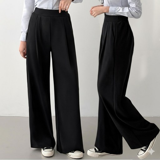 핏오짐 여성 원턱 와이드 일자 슬랙스 밴딩 와이드팬츠 스판 바지