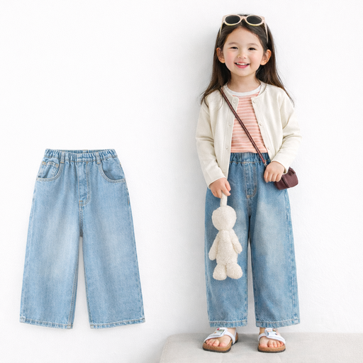 유아동 데님팬츠 남아 여아 청바지 키즈 일자핏 데일리룩 밴딩 예가와이드팬츠