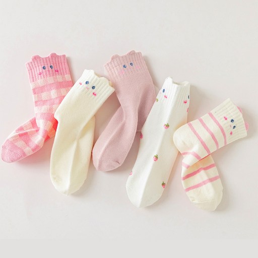 아이뿜 여아용 핑크 귀요미 양말 5종 세트 F98